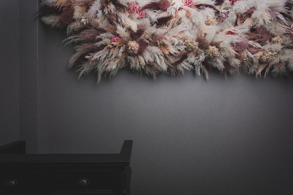 サロンに入ってすぐ目の前には大きなフラワーウォールがあります。